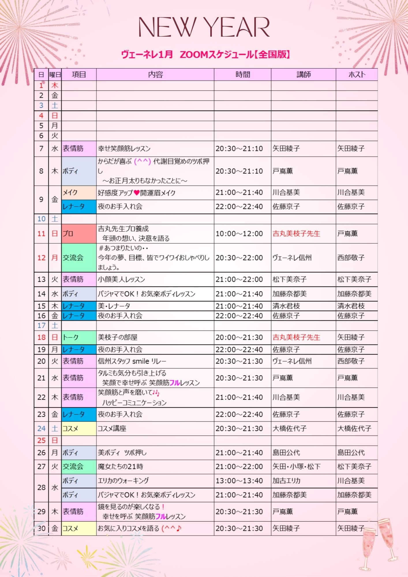 2026年1月スケジュール